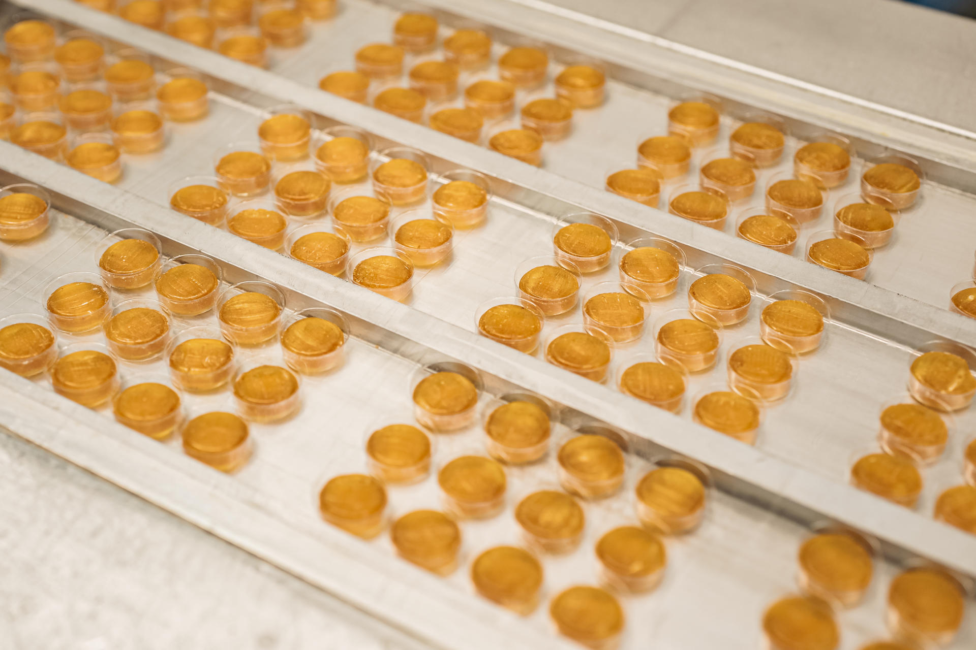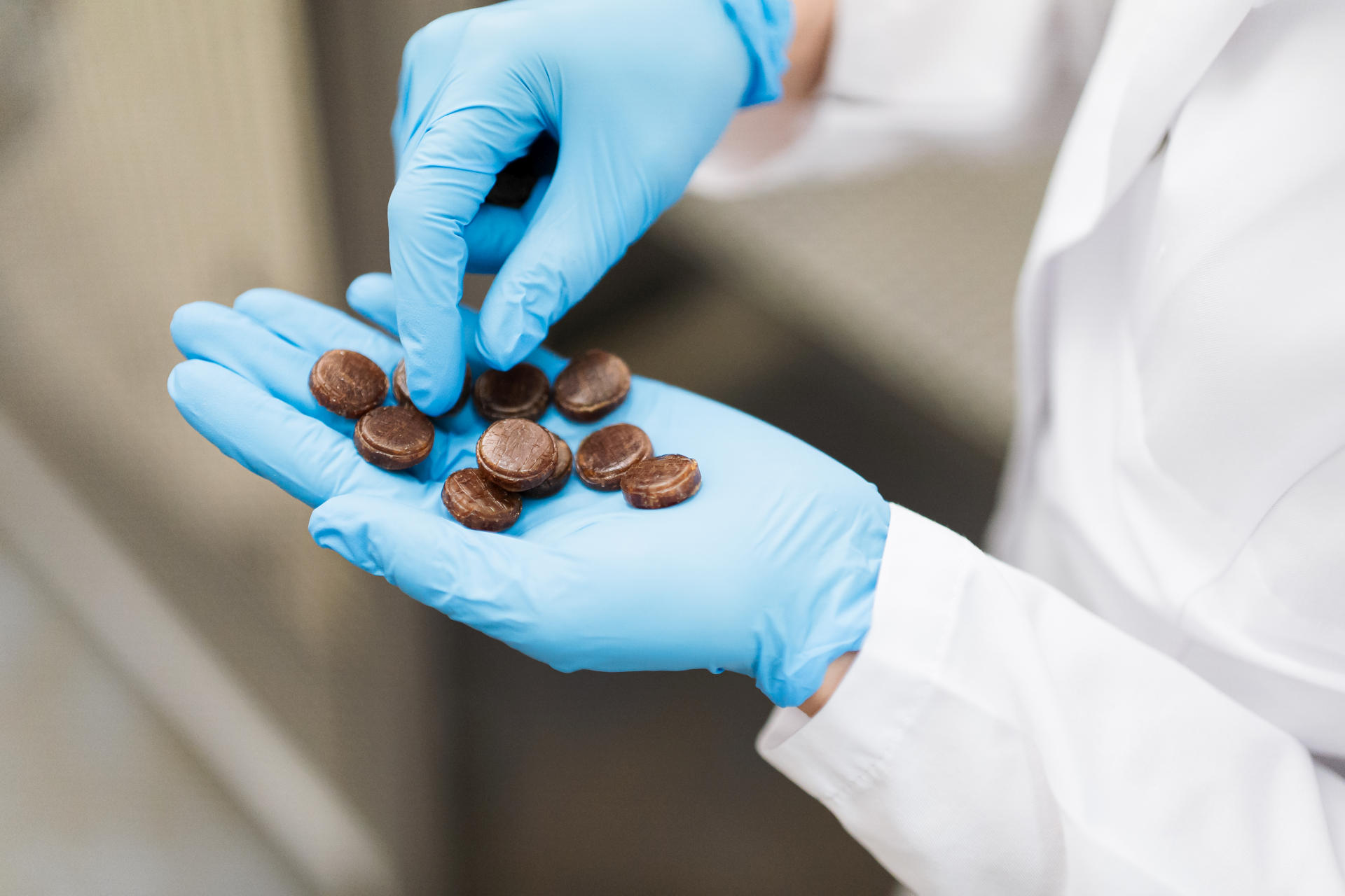 Produkujemy tabletki do ssania i rozgryzania, łączące funkcjonalność z atrakcyjną formą i smakiem. Oferujemy wersje z cukrem, jak i bez dodatku cukru, z opcją personalizacji koloru, smaku i opakowania.